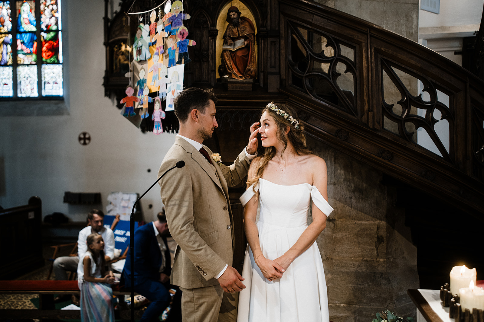 Ein Tag voller Emotionen, echter Nähe und unvergesslicher Momente. Als Chris in der Kirche plötzlich mit einem Voodoo-Jürgens-Song seine Braut überraschte, lag für Sekunden pure Magie in der Luft.Lena’s Blick, das leise Lachen, die Tränen – ein Moment, der allen im Raum Gänsehaut schenkte. Eine Hochzeit, die zeigt, wie tief und ungestellt Liebe sein kann.