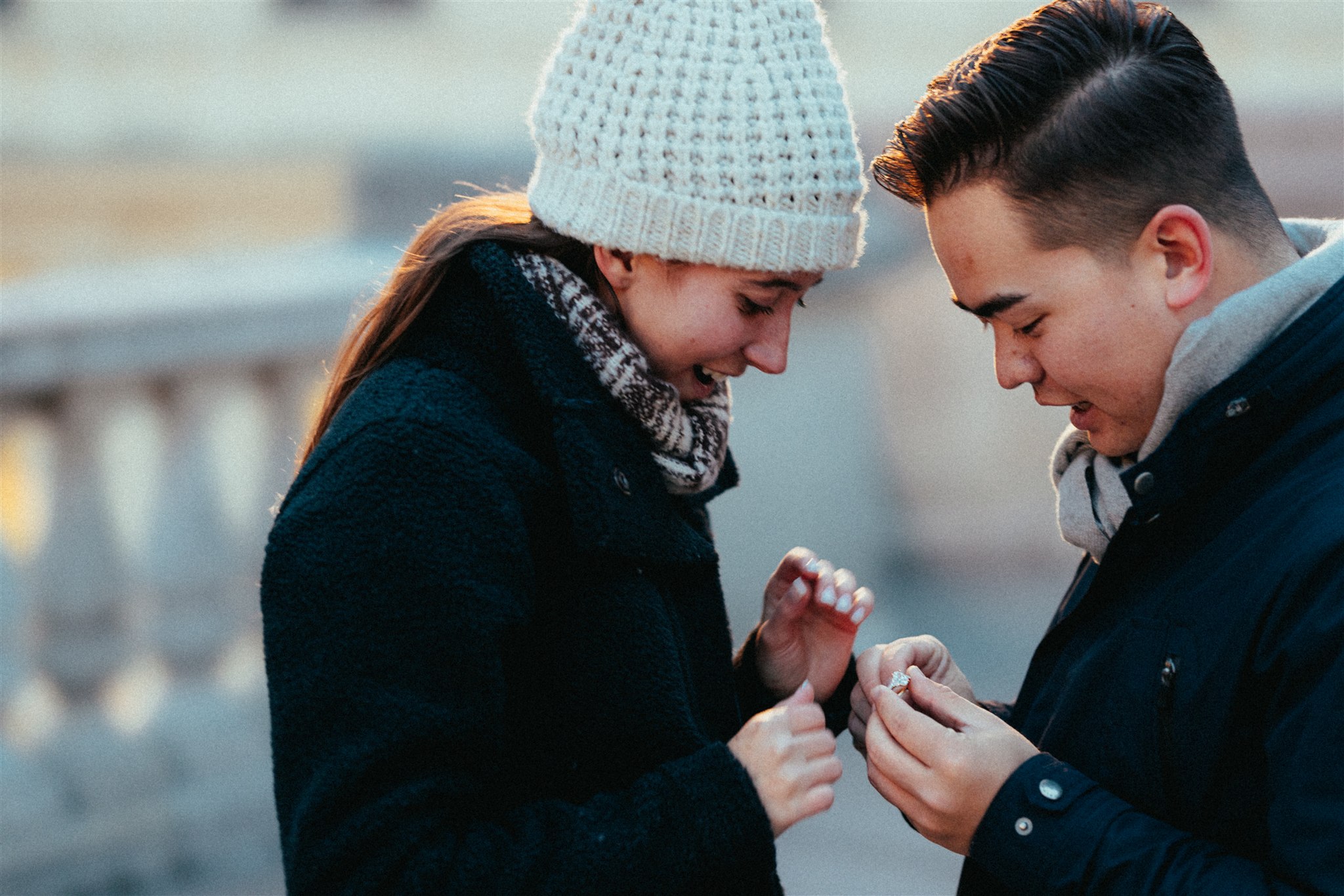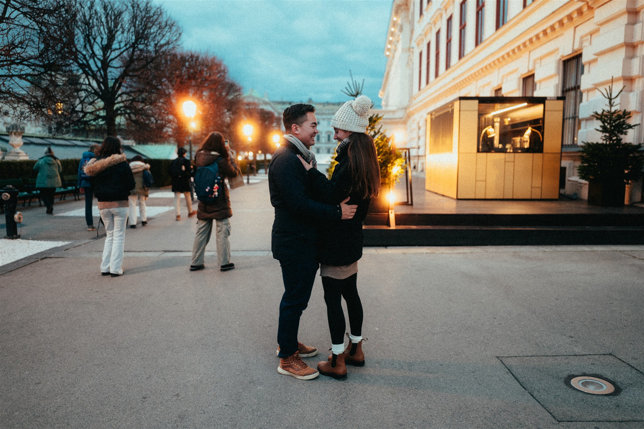 Ein Heiratsantrag zwischen Lichtern, dem Duft von gebrannten Mandeln und einer Stadt voller Romantik.
